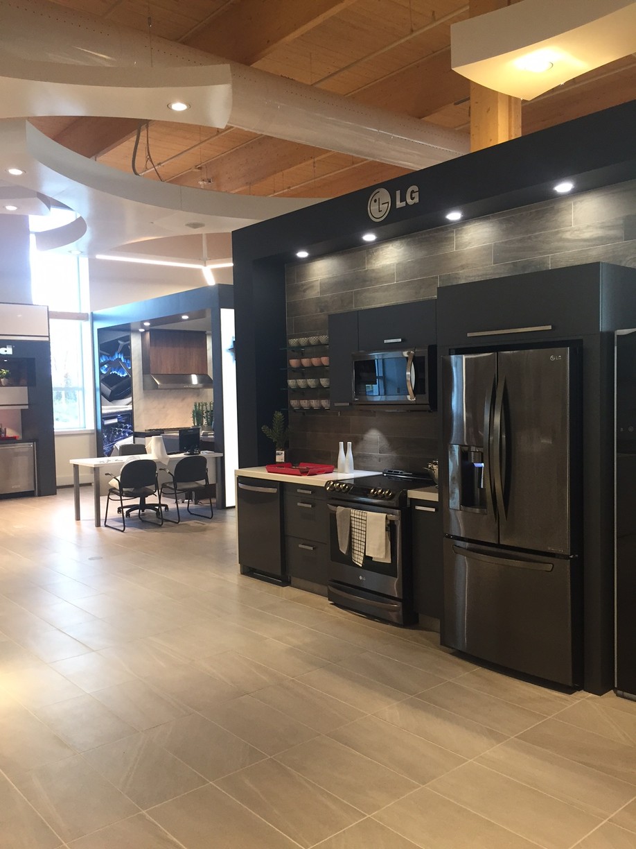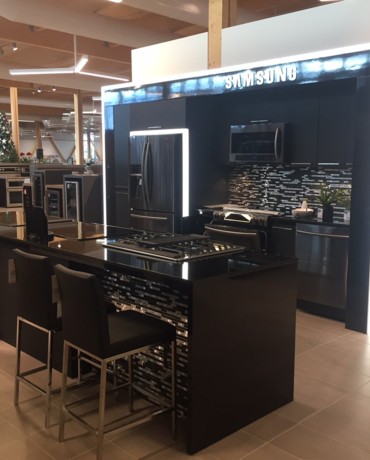 Réalisation des revêtements de céramique dans le nouveau magasin Ameublements Tanguay de Trois-Rivières