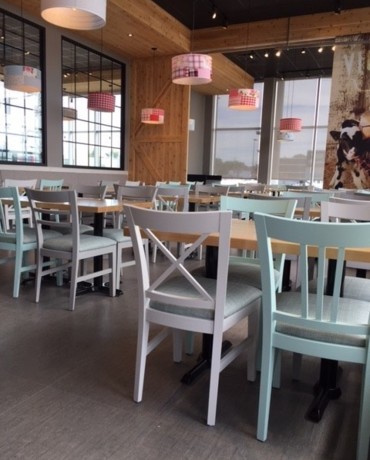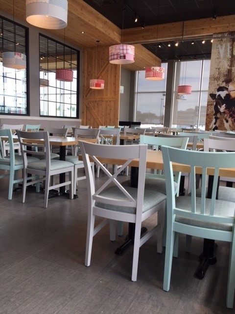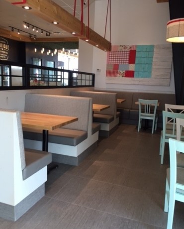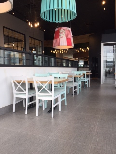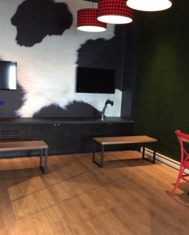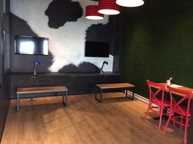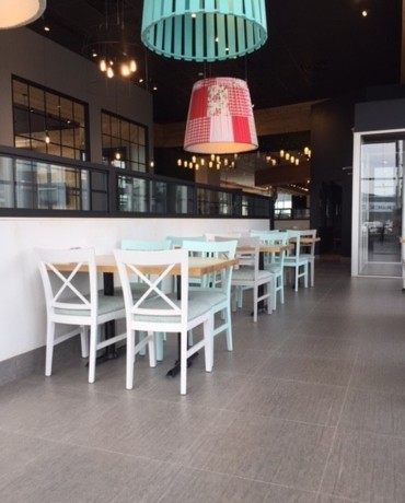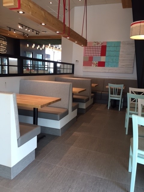 Réalisation des revêtements de plancher dans la nouvelle succursale Fromagerie Victoria à Trois-Rivières.