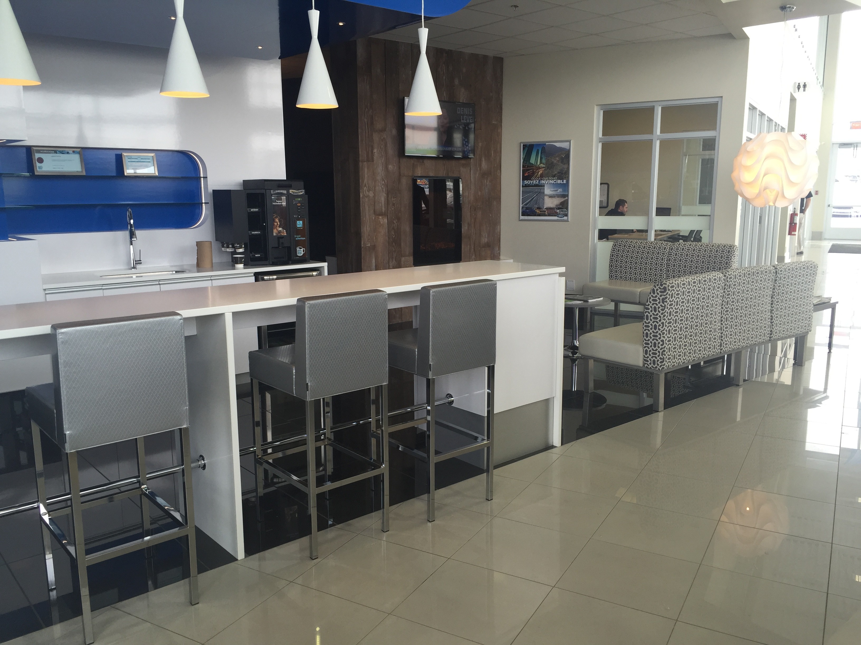 Victoriaville Mandat : Réalisation des revêtements de planchers dans le nouveau Concessionnaire Laquerre Ford à Victoriaville.