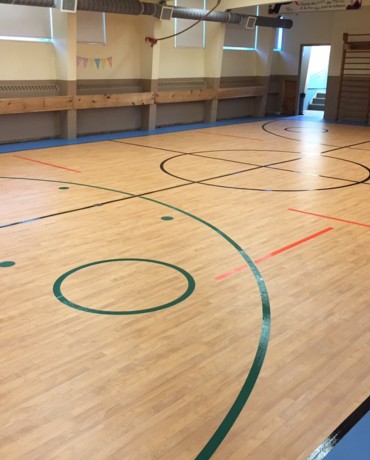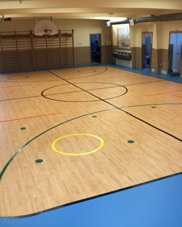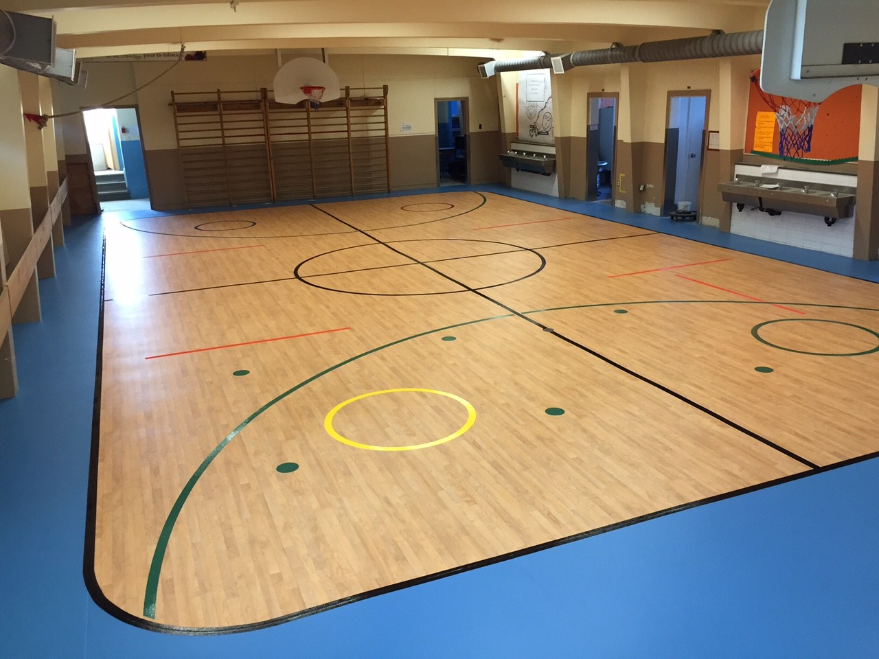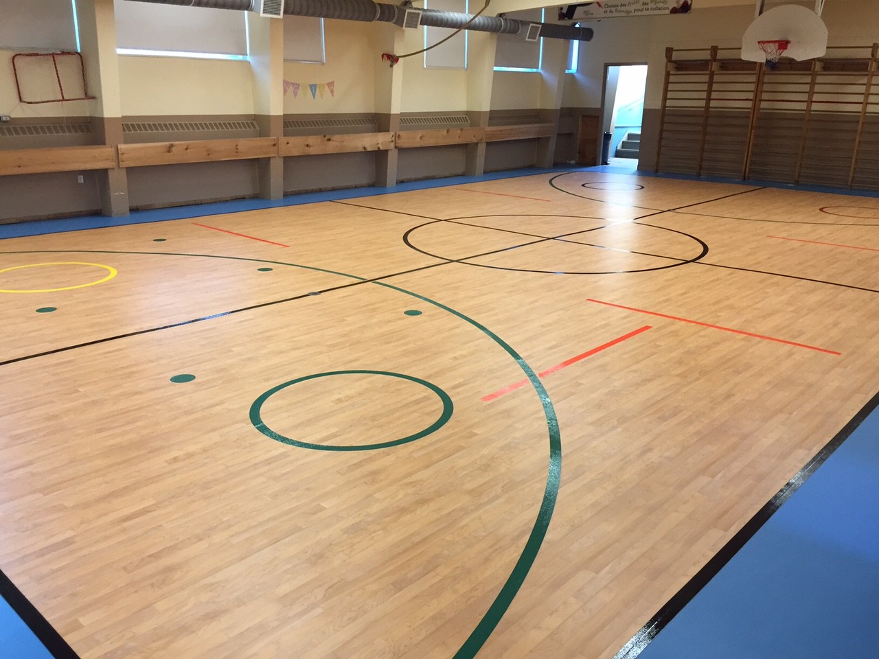 Nouveau revêtement de plancher et lignes de jeux dans le gymnase de l'école Notre-Dame-des-Prairies à Trois-Rivières